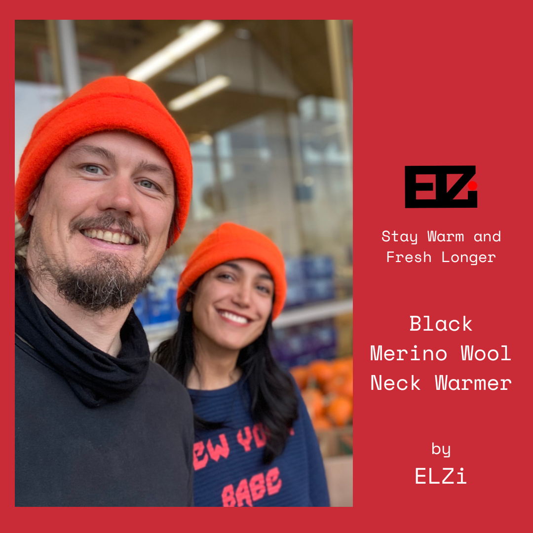 Black 100% Merino Wool neck warmer by EZLi Nuns Island Seamstress
